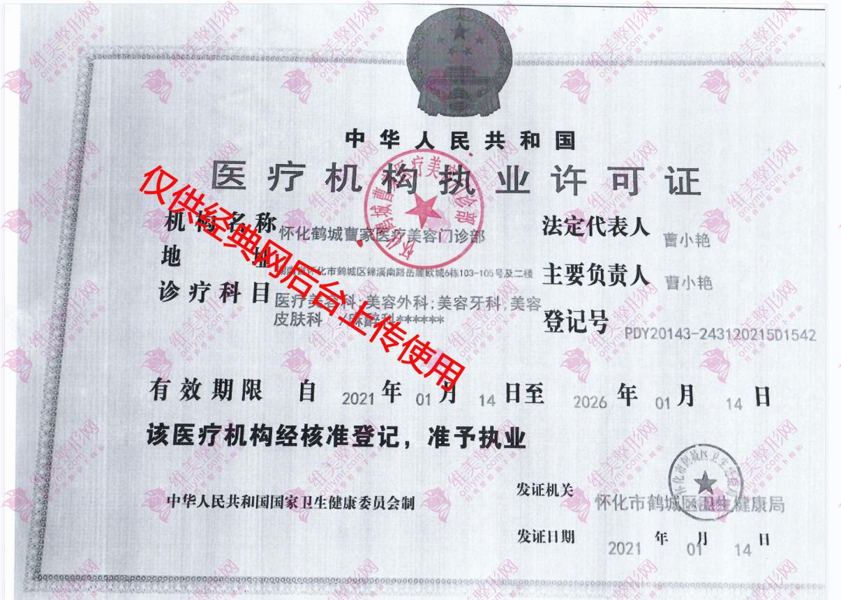 | 曾用名 | 怀化曹家医疗美容医院有限公司 | 纳税人资质 | - | 组织机构代码 | MA4RTLLW-X |