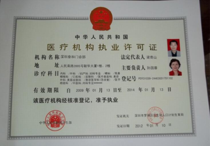 深圳泰禾医疗美容门诊部于2015年创立,是经深圳市罗湖区卫健部门批准成立的医疗美容机构,位于深圳市人民南路联华大厦一、二楼(佳宁娜广场对面)。是一所集医疗、保健、康复、科研为一体的现代化综合型医院。占地面积2000平方米。环境优雅布局合理,宽敞明亮,处处体现出绿色环保人文意识,为患者营造了一个“安静、舒适、文明、方便”的就医环境。