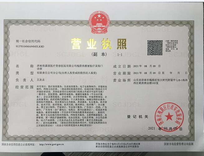 | 经营范围 | 许可项目:医疗美容服务;生活美容服务;电子出版物制作;音像制品制作;网络文化经营。(依法须经批准的项目,经相关部门批准后方可开展经营活动,具体经营项目以相关部门批准文件或许可证件为准)一般项目:医院管理;融资咨询服务;健康咨询服务(不含诊疗服务);会议及展览服务;企业管理;企业管理咨询;市场营销策划;企业形象策划;政府采购代理服务;个人商务服务;病媒生物防治服务;招投标代理服务;项目策划与公关服务 | 人员规模 | - | ||
