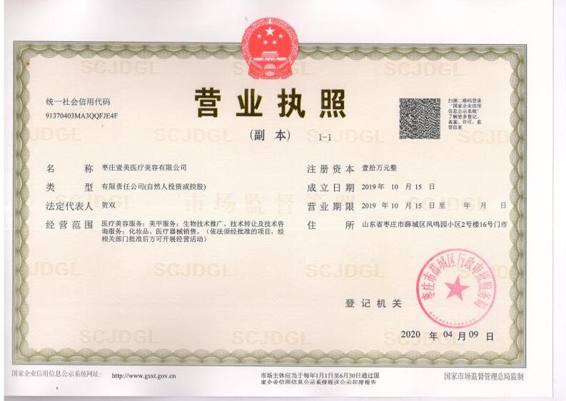 | 经营范围 | 医疗美容科(美容外科、美容皮肤科、美容牙科)、医学检验科;第一类医疗器械零售(或批发);第二类医疗器械批发;健身器材、办公用品的批零兼营。(依法须经审批的项目,经相关部门审批后方可开展经营活动) | 人员规模 | - | ||