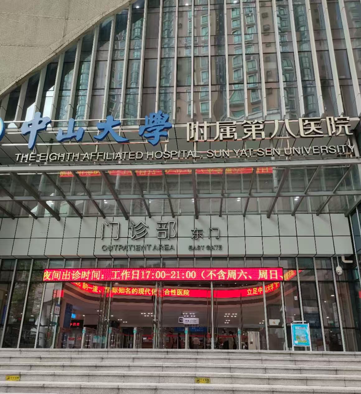 中山大学附属第八医院位于深圳市福田区,系国家三级甲等综合医院、中山大学直属附属医院,拥有骨科、心血管内科两个广东省省级临床重点专科,为广东省骨科疾病临床医学研究中心。医院区位优越,环境优美,背靠南粤腹地、毗邻港澳地区,坐拥“城市绿肺”深圳中?公园和院内空中花园。医院现由院本部、31个社康中心(含社康站)组成,有职工2600余人,建筑面积达21万平方米,停车位1200余个,床位数1300余张。