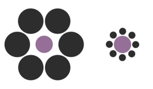 这就是著名的艾宾浩斯错觉了,我们的耳基底提升显脸小的原理跟这个是一样的