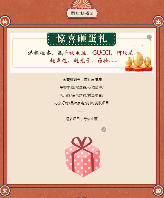 砸蛋赢、满额送、0元兑…8大特权