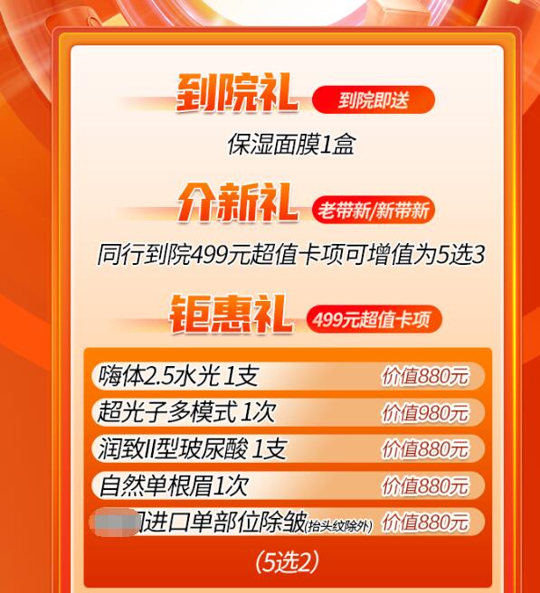 钜惠礼499元超值卡项,热卖项目5选2