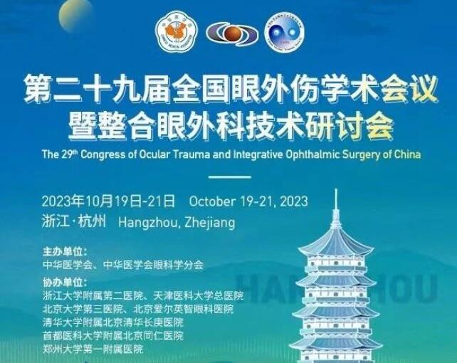 经中华医学会眼科学分会眼外伤学组讨论决定,第二十九届全国眼外伤学术会议暨整合眼外科技术研讨会将于2023年10月19日-21日在杭州市召开。本届大会的主题是“卓越创新,护佑眼健康”,将继续秉承“打造整合眼外科技术交流平台”的学术宗旨,在会议中突出眼外伤救治前沿技术、视网膜外科、角膜、白内障及青光眼手术技术。国内眼科各个专业领域的顶级专家将对眼外伤救治以及眼外伤密切相关领域的研究进展进行充分交流与热烈讨论。