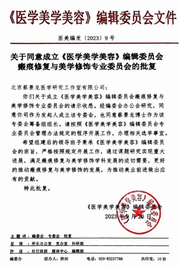 鉴于目前癌痕的研究和修复现状,本次会议拟成立《医学美学美容》编辑委员会痕修复与美学修饰专业委员会,推广瘀痕修复先进技术和科学治疗方法,让瘾痕患者治疗上取得较好的疗效,美观上获得较好的修复,造福于患者,促进搬痕医学行业的发展。