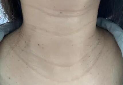 ·脖子真皮层较薄,脂肪堆积过厚,会把皮肤撑开,形成颈纹。