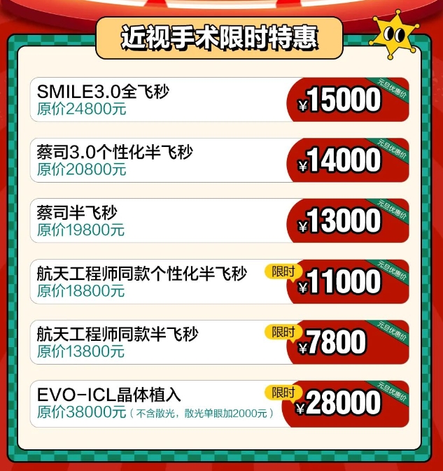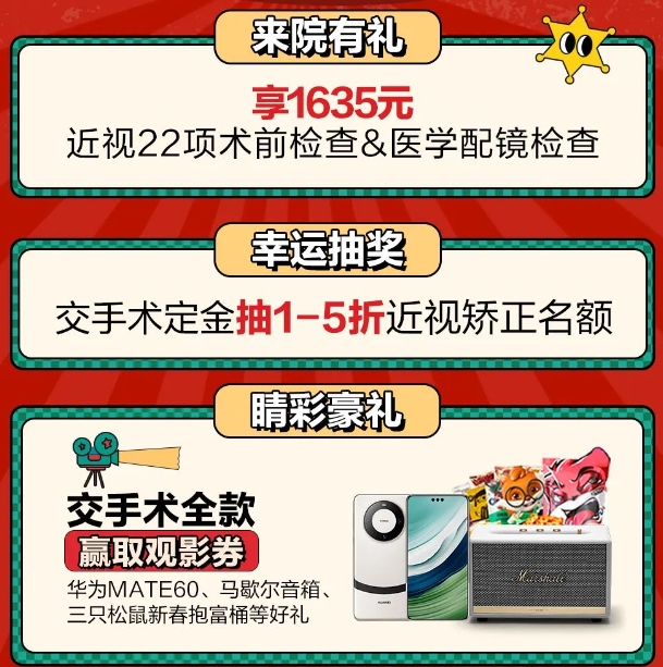 交定金抽1~5折近视手术名额