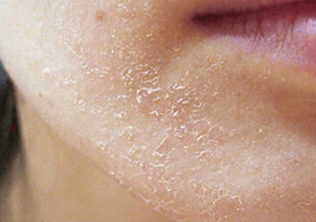 b、毛孔粗大、皮肤粗糙、油脂分泌旺盛;