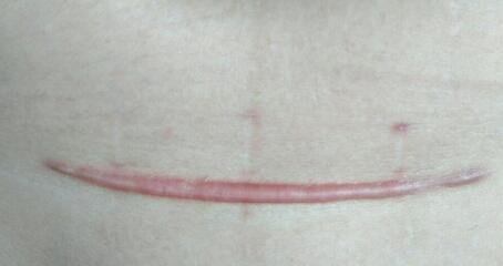 剖宫产遗留下来的疤痕,它虽然见证了一个新生命的诞生、带来新生的喜悦,但也体现了女性的付出和不易。有的人恢复地较好,切口就只留下一条淡淡的痕迹;但如果没恢复好,疤痕出现严重增生,很容易让人产生自卑感。