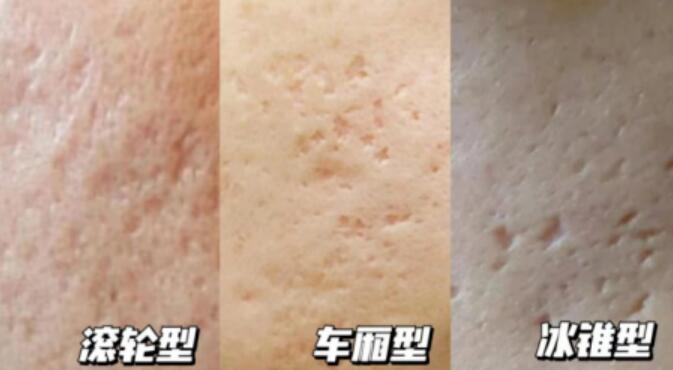 ②车厢型:底部面积比开口处小,边缘较为明显,深度中等,看起来像形状各异的碗,是一种常见的痘坑。