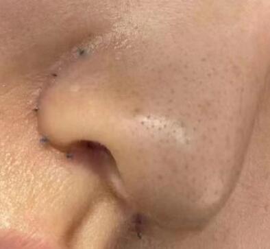 ▽注意:鼻影和粉底液等化妆品,尤其是有颜色刺激性,早期化妆尽量避开切口。