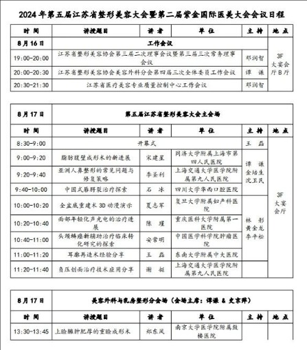 会议同期将召开江苏省整形美容协会第三届二次理事会议暨第三届三次常务理事会议。