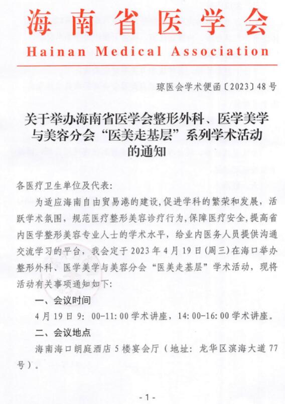 关于举办海南省医学会整形外科、医学美学与美容分会“医美走基层”系列学术活动的通知