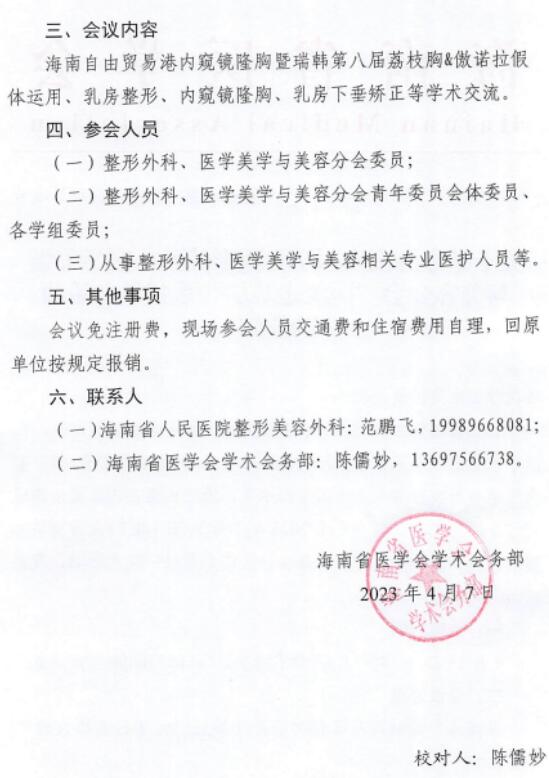 海南自由贸易港内窥镜隆胸暨瑞韩第八届荔枝胸&傲诺拉假体运用、乳房整形、内窥镜隆胸、乳房下垂矫正等学术交流。
